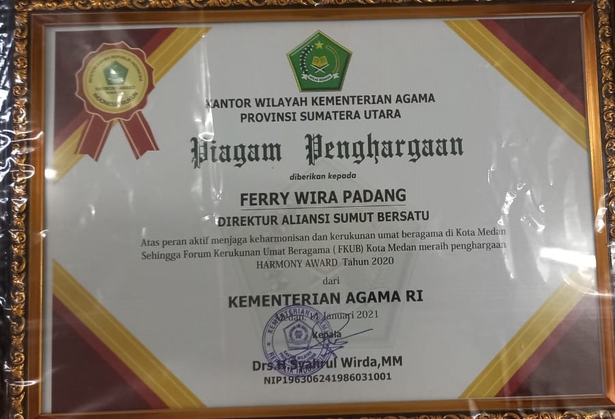 Penghargaan ini mengingatkan kita atas upaya – upaya yang telah kita lakukan untuk membangun perdamaian dalam keberagaman. Perjuangan masih panjang, tugas semakin banyak. Semoga penghargaan ini memotivasi kita untuk tetap melakukan upaya – upaya untuk merawat kerukunan di Kota Medan.